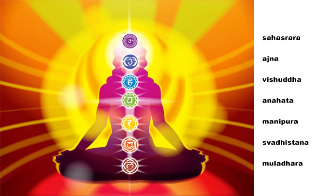 Az öt emberi csakra a gerinc mentén található, kisugárzásuk és energiájuk vezet bennünket a lelki fejlődés útján. Ezen a fejlődési úton szembesülünk minden tulajdonságunkkal és jellemvonásunkkal, míg fel nem tártuk és meg nem tisztítottuk őket. A két isteni csakra a fejben található. Az agja csakrában eljutunk az önmegismerésig, a sahasrara csakrában bontakozik ki a Legfelsőbb Tudat és egyesül az egyéni Önvaló az Isteni Önvalóval. Mindegyik csakrához tartozik egy lótuszvirág, egy szimbólum, egy mantra, egy szín, egy őselem, egy állat és egy istenség. Ezek szemléltetik a csakrák tulajdonságait, sajátosságait és hatásait. A hozzájuk tartozó mantrával erősíthetjük működésüket.